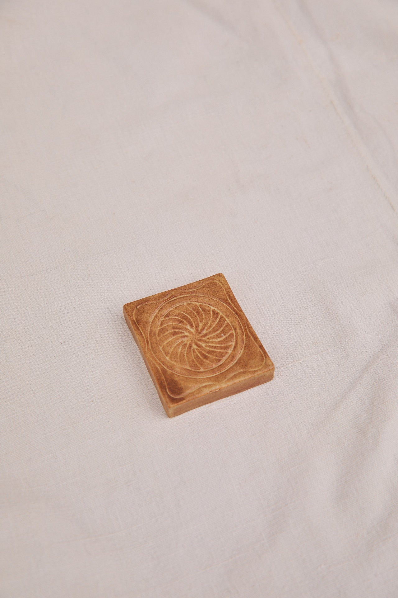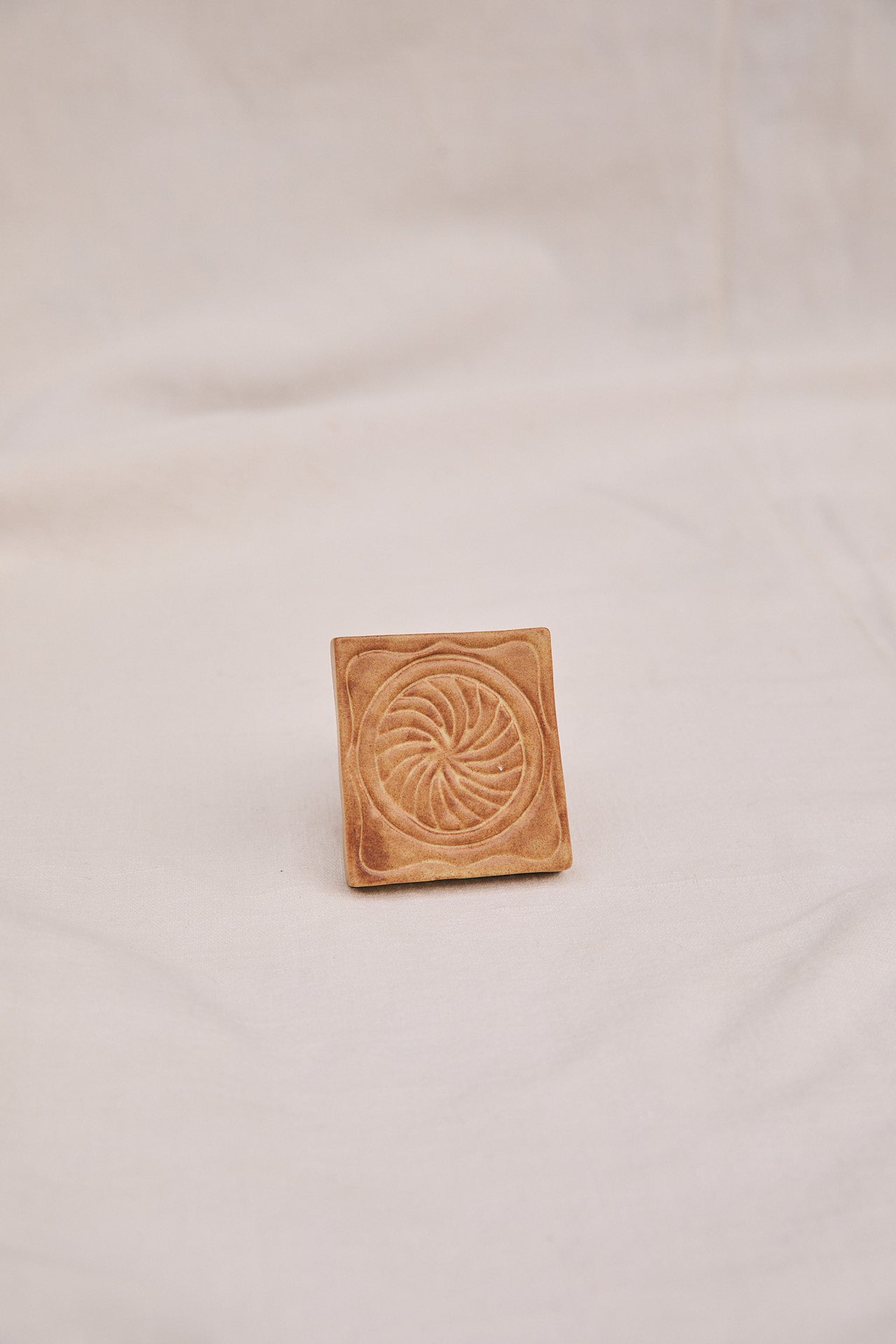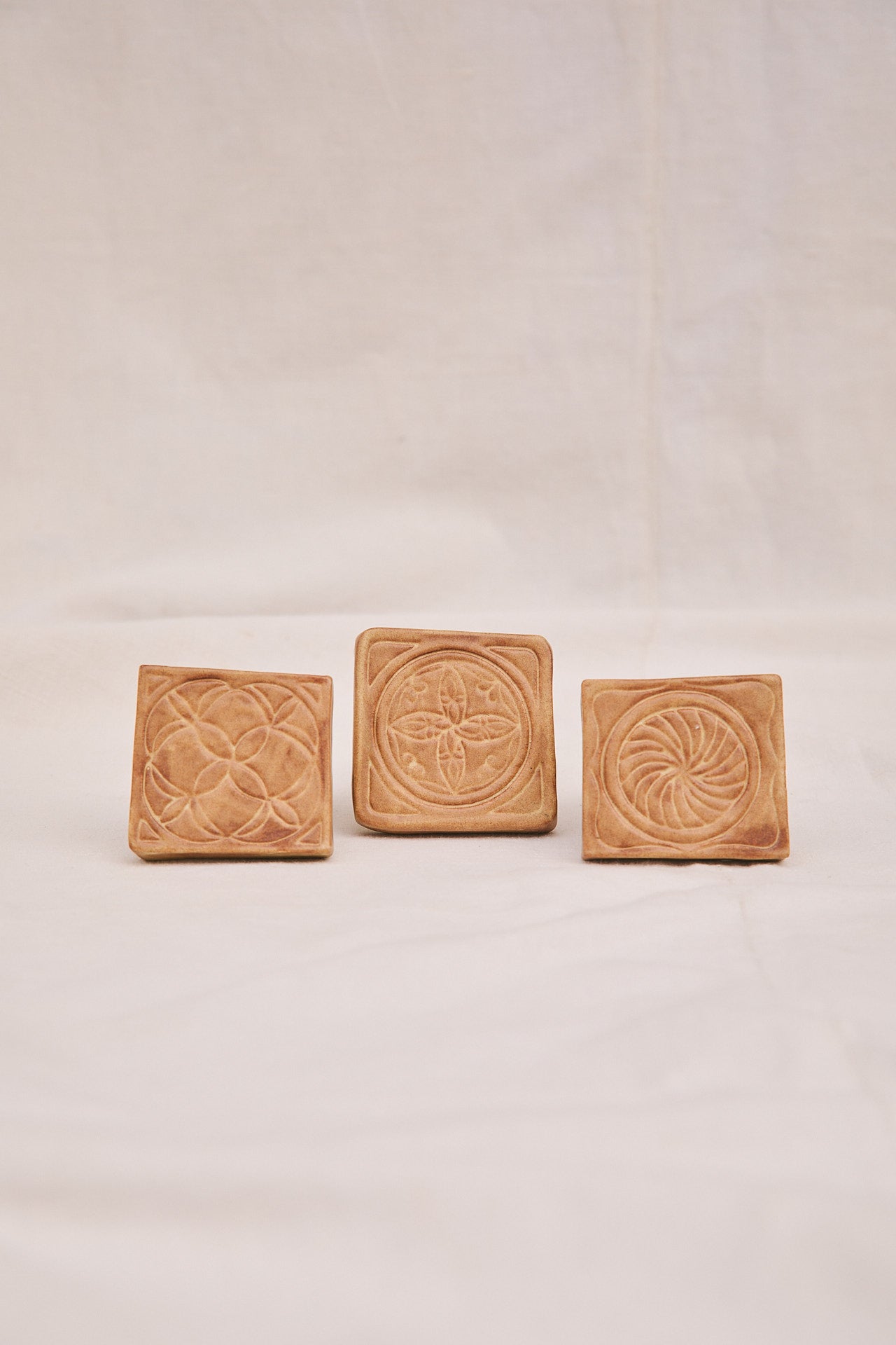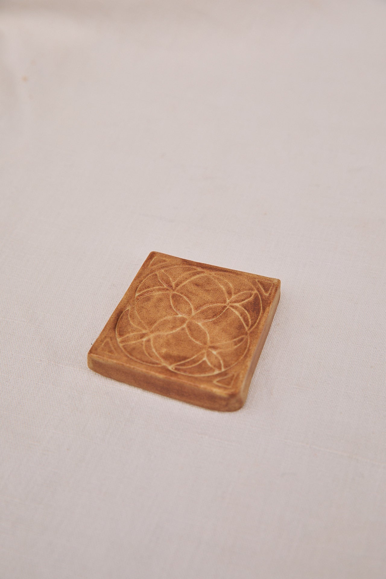Hand carved ceramic tile, made by Gina A. Sookias, each piece is 2x2". This piece can be wall hung or laid flat.