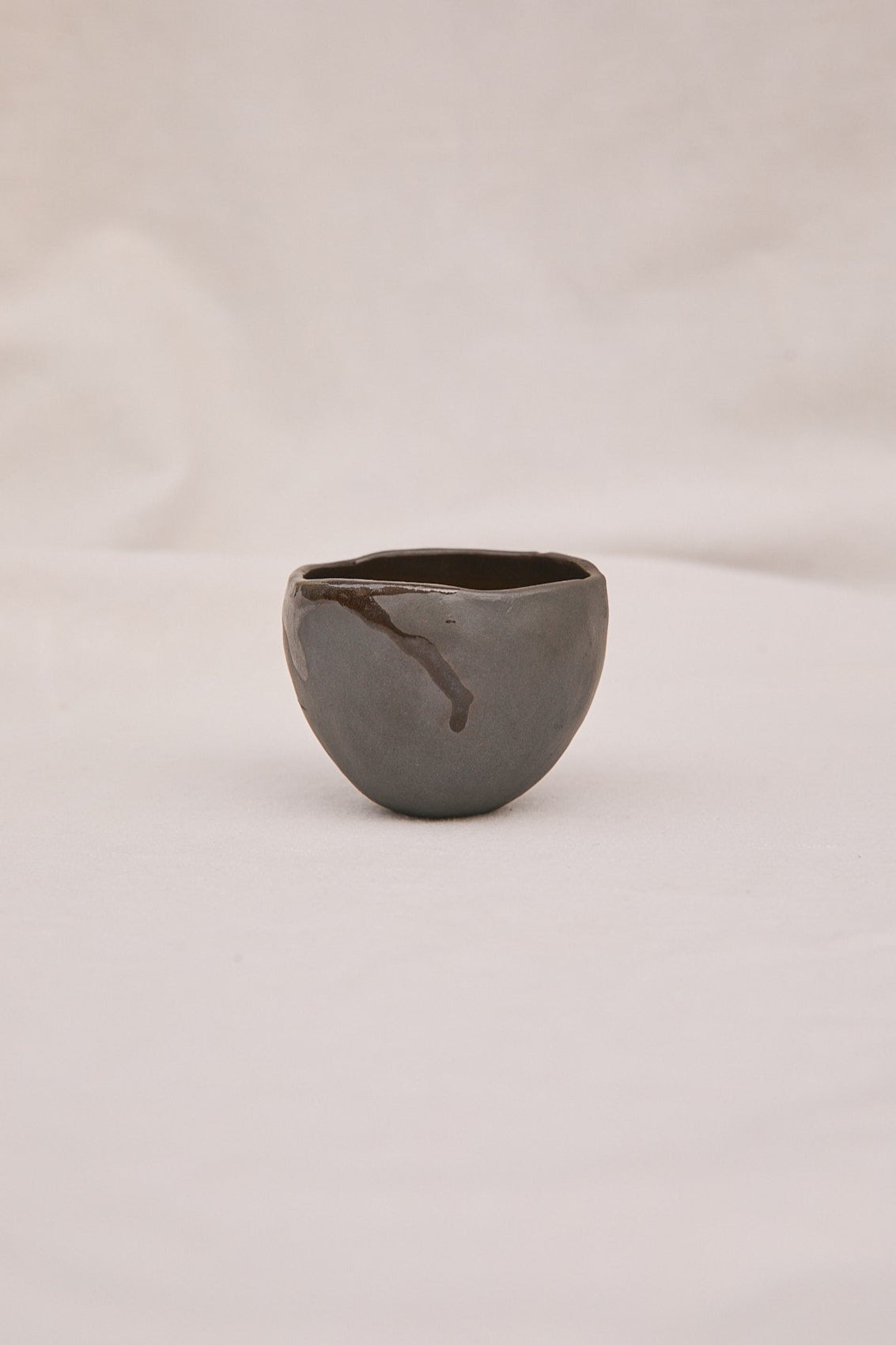 Handmade ceramic piece made with black clay and finished with an amber glaze. Made by Natalia Ira Sookias.