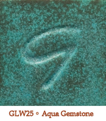 Matte and opaque. This is a kissing cousin to Copper Patina, but producing a bright aqua blue that mottles to black. Food-safe.