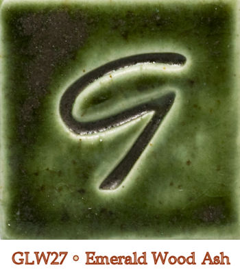Satin-to-gloss and semi-opaque. Organic green where thin, moving to smoky deep charcoal where thick. True ash glaze: test your application for runs. Food safe.