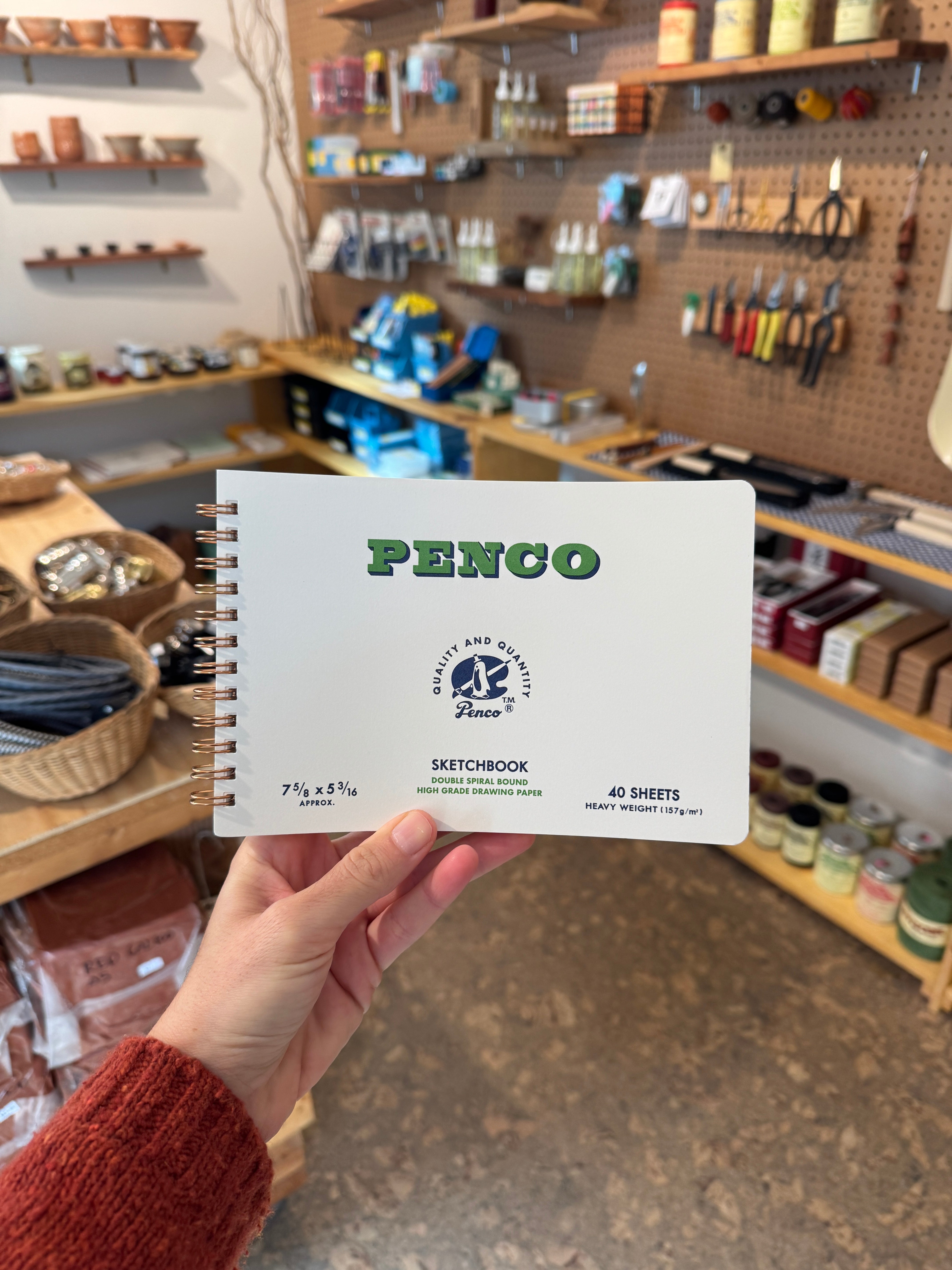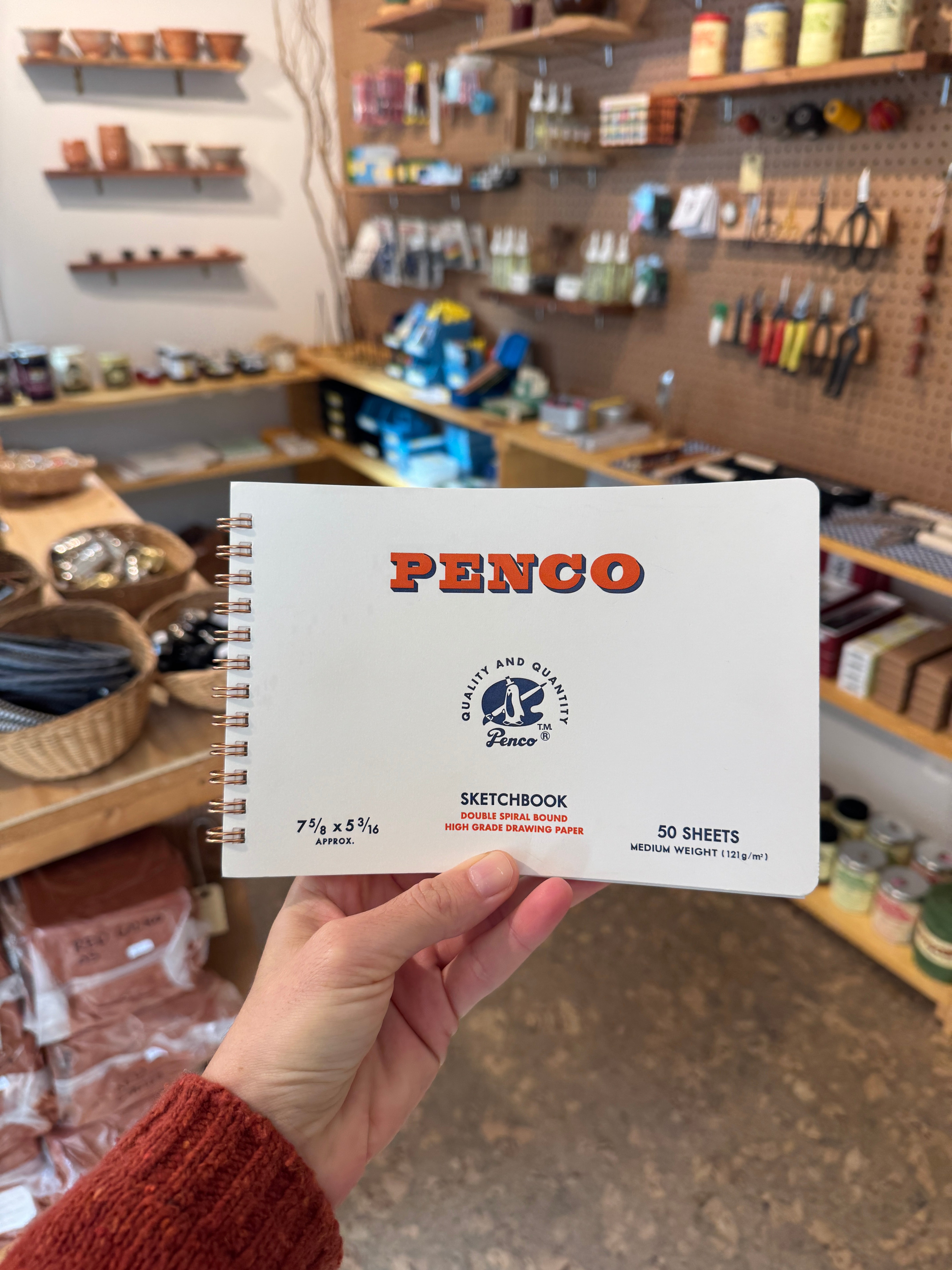 The drawing paper, "HS Gaou," is suitable for watercolor and crayon. Each size offers both Medium and Heavy paper thickness options. The cover features Penco's signature design with two-color letterpress printing. The back cover is made of thick board, making it easy to draw even when holding the sketchbook in your hand.
