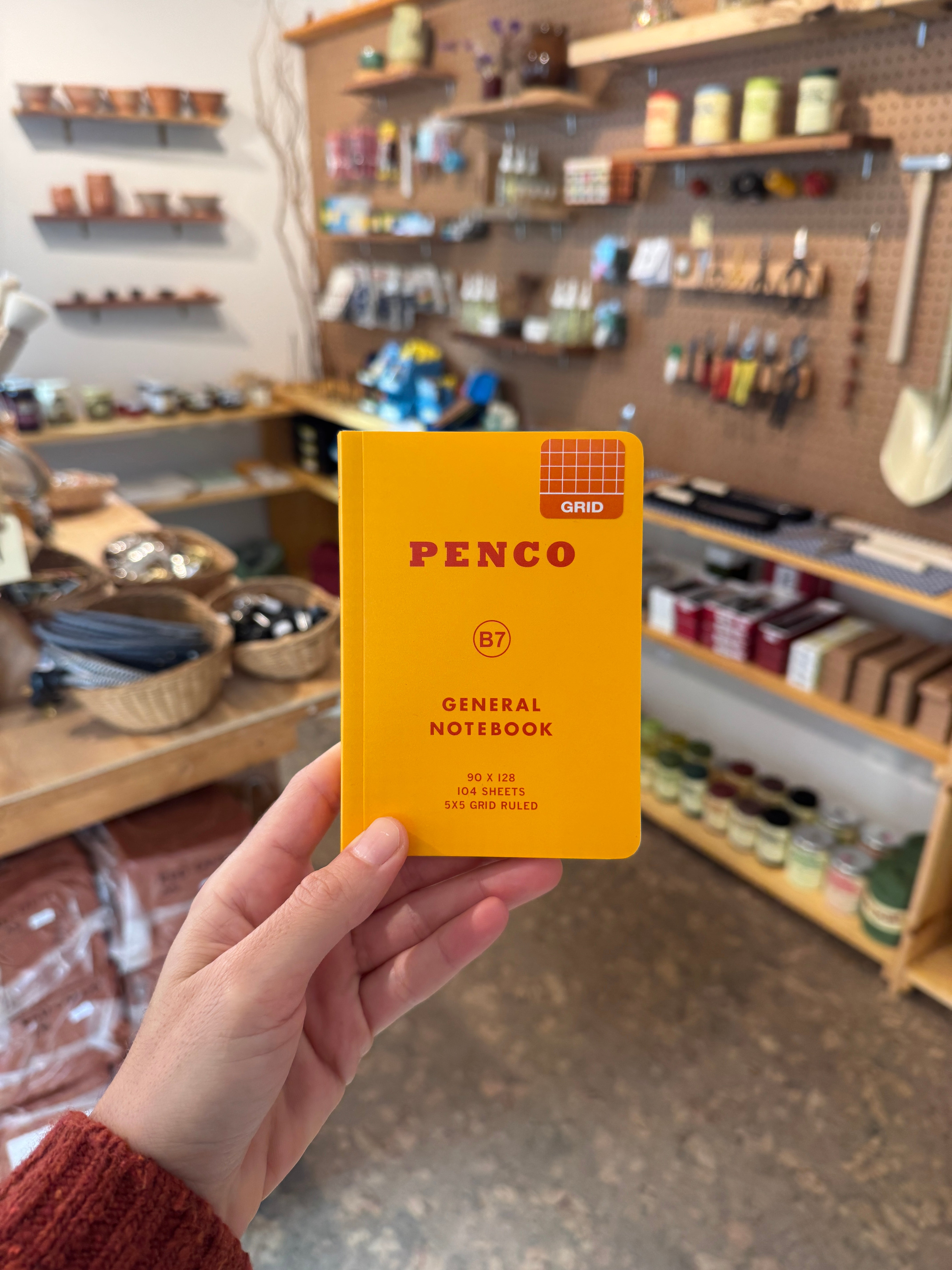 A pocket-size gridded notebook with a flexible plastic cover by Penco.
