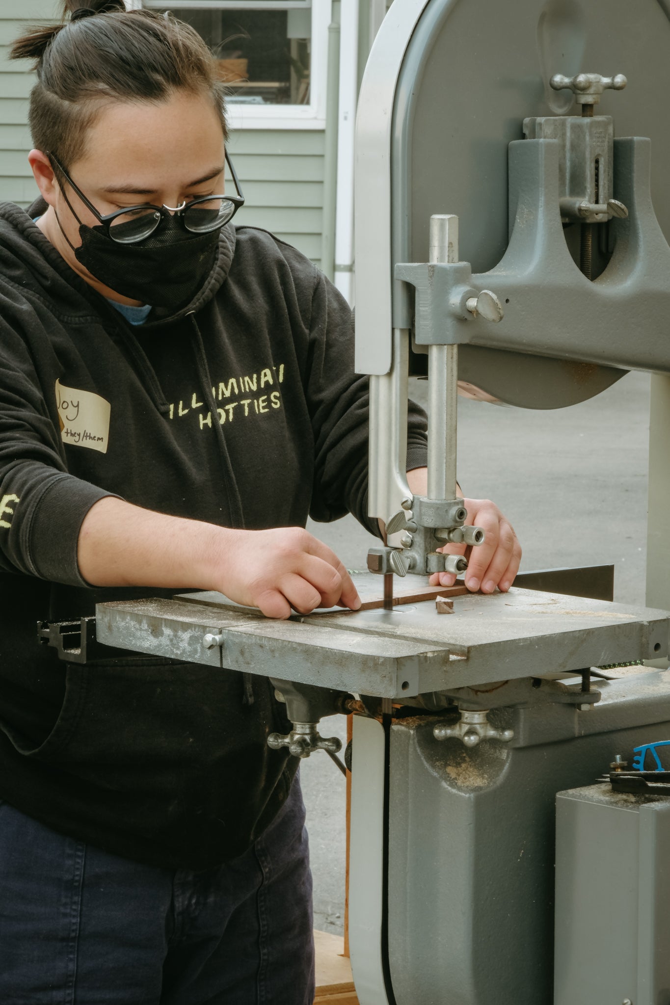 Sarah Watlington is an artist and educator whose work blends complex and primitive technologies to create genre-defying sculptures for use and non-use. They attended the Krenov School of Fine woodworking in Ft. Bragg, CA, 2018, and hold a BFA from the Design Institute of San Diego, 2010. Sarah teaches woodworking at San Diego State University as well as shorter intensives locally and nationally. She works out of her studio in Los Angeles, CA.